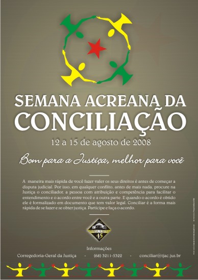 “Conciliação: bom para a Justiça, melhor para você” – com esse slogan o Poder Judiciário do Acre realiza na próxima semana, de 12 a 15 de agosto, a Semana Acreana da Conciliação.