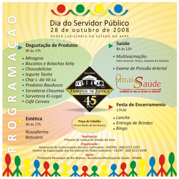 Para comemorar o Dia do Servidor Público, o Tribunal de Justiça do Estado do Acre organiza uma programação especial para seus servidores.