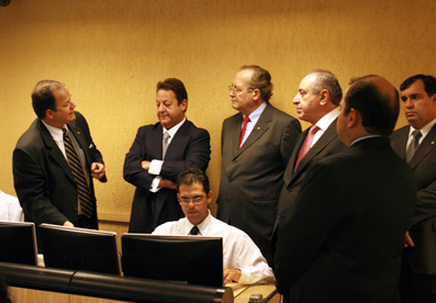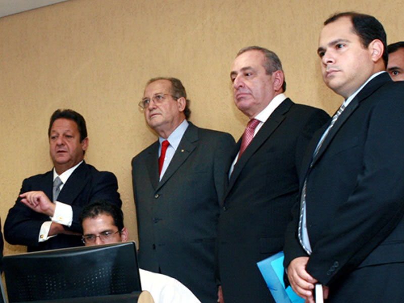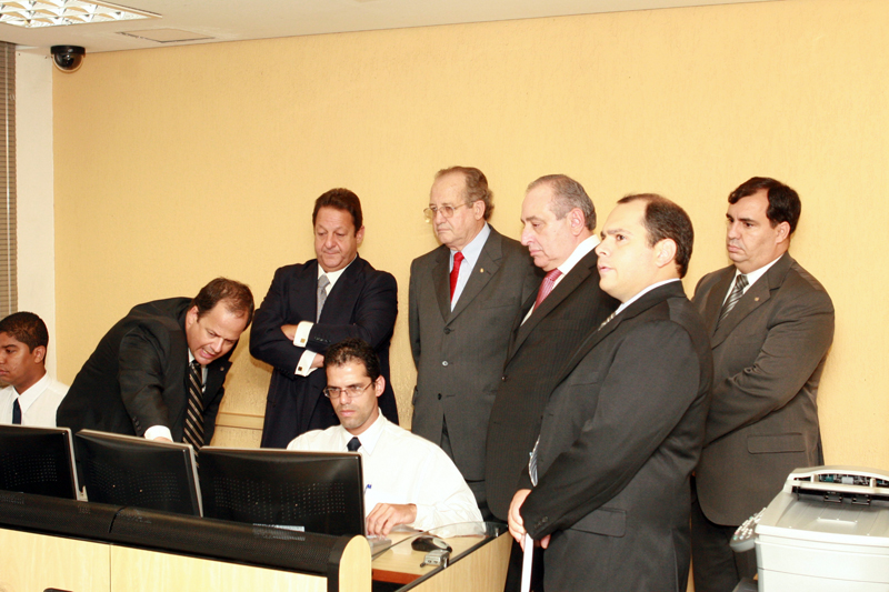 No gabinete de Luiz Zveiter, Pedro Ranzi e o assessor jurídico do TJAC, Alexandre Bonfim, puderam conhecer melhor o funcionamento da estrutura da Justiça do Rio nos 13 Núcleos Regionais instalados no Estado, assim como o funcionamento do sistema de segurança dos Fóruns.