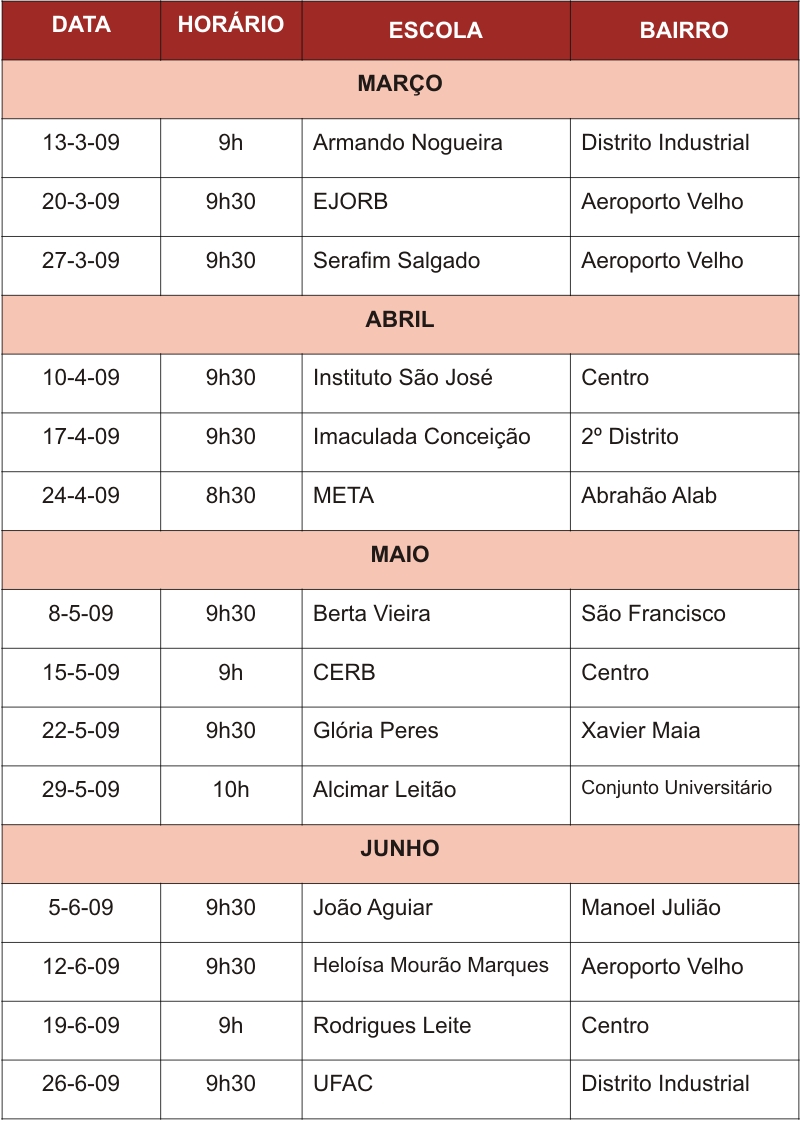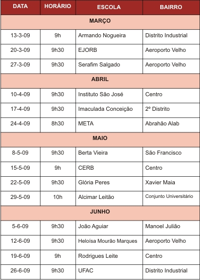 CALENDÁRIO DE PALESTRAS EM RIO BRANCO