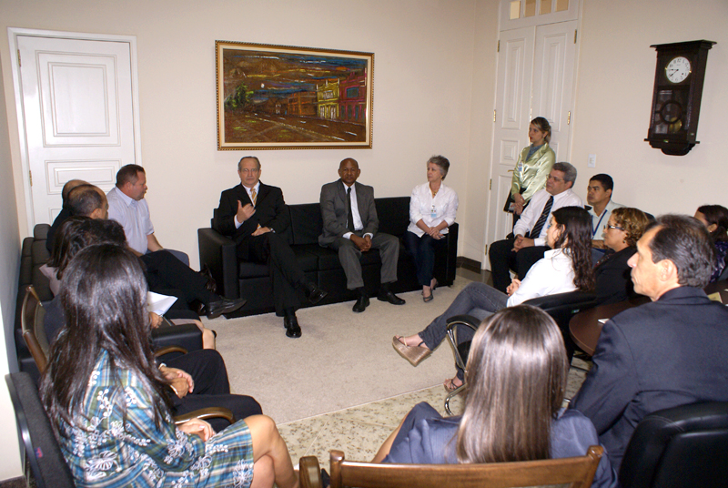 O encontro foi acompanhado pelo Vice-Presidente do Tribunal e pelo Corregedor Geral da Justiça, desembargadores Adair Longuini e Samuel Evangelista, diretores, assessores e servidores do Judiciário.