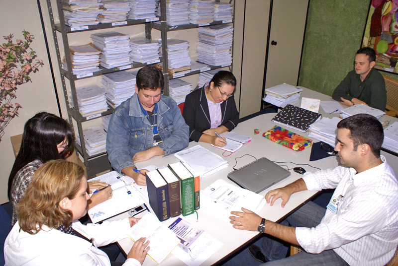 Os escrivães Patrícia Alvarez, Aparecida Bardales, Cláudia Simone e Thiago Jacoud, das 1ª, 2ª, 3ª e 4ª Varas Cíveis, respectivamente, realizaram reunião em cumprimento ao cronograma definido pelo Programa Conciliar. Também participaram Vitor Migueis, oficial de gabinete, e Socorro Rodrigues, escrivã substituta, da 2ª Vara Cível, além do assistente da 1ª Vara Cível da Fazenda Pública, Guilerme Duarte.