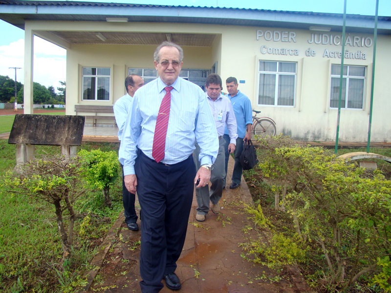 Na Comarca de Acrelândia, distante 122 quilômetros de Rio Branco, o Presidente iniciou a visita pelo Fórum Juiz de Direito João Oliveira de Paiva. Acompanhado pela Secretária do Foro, Eliane Alves, ele percorreu as instalações da unidade e conversou com o Promotor de Justiça Rogério Woltolline.