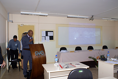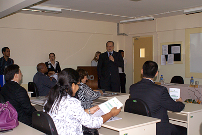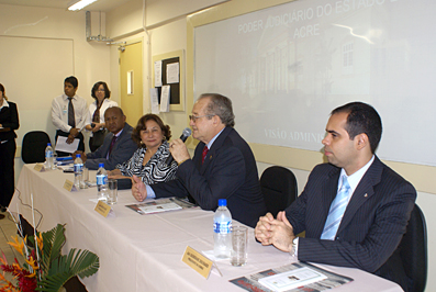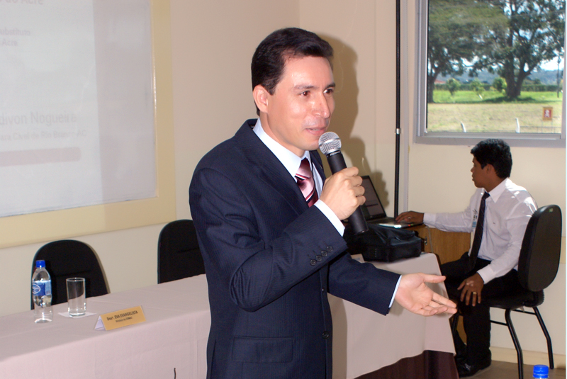 Para encerrar o curso na parte da manhã, o Juiz de Direito Laudivon Nogueira, Titular da 1ª Vara Cível da Comarca de Rio Branco, palestrou sobre o Poder Judiciário e os recursos da Tecnologia da Informação: SAJ, Bacenjud, Getran, Infoseg, Banco do Brasil – depósitos judiciais e processo eletrônico. O Juiz Laudivon foi apresentado aos Juízes Substitutos pela Desembargadora Eva Evangelista, que o elogiou pelos seus conhecimentos na área da informática.