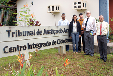 Acompanhado do Diretor Geral do Tribunal de Justiça, Carlos Afonso, o Presidente foi recebido no município de Assis Brasil pelos servidores do Centro Integrado da Cidadania (CIC), da Comarca do município, que já foi criada, mas ainda não instalada.