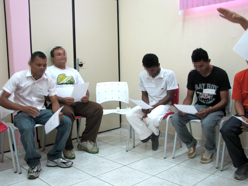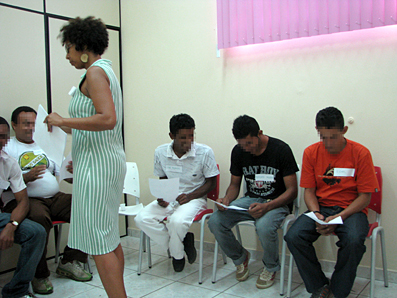 O encontro entre psicólogos, assistentes sociais e pós-penalizados pela Justiça acontece de modo descontraído, com local acolhedor e música ambiente. Tudo é preparado de modo a deixar bastante à vontade os "pacientes", explicam as coordenadoras. Além de uma mesa, cadeiras e televisão, almofadas são colocadas estrategicamente na sala para facilitar a prática de alguns exercícios relaxantes antes das reflexões mais apuradas, à base de conversa sobre o constrangimento de ter se envolvido com a polícia e com a Justiça.