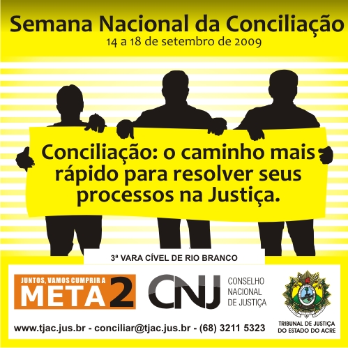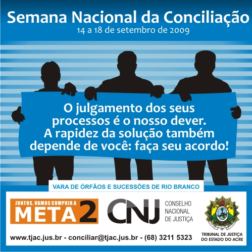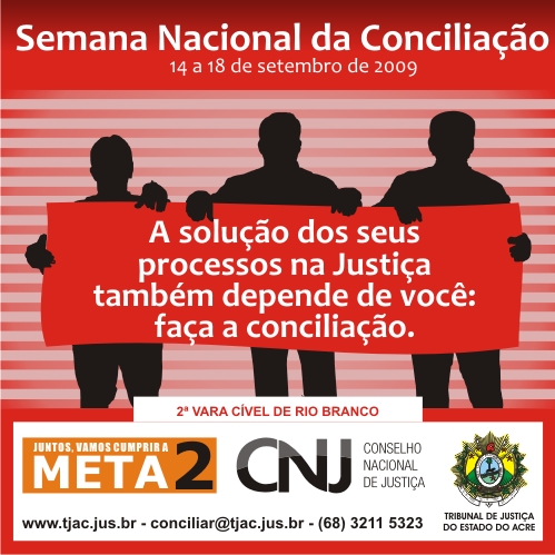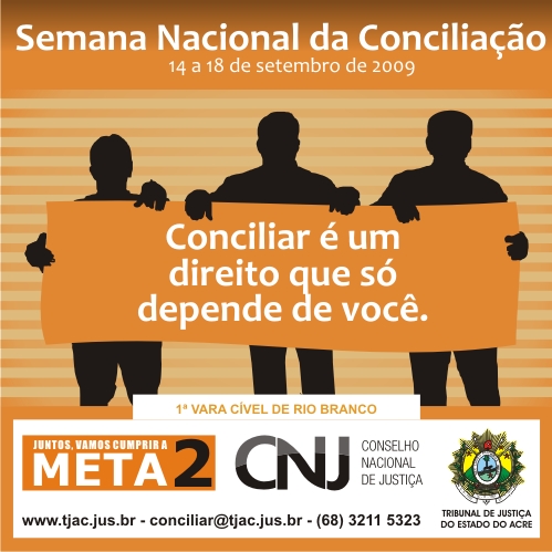 Semana Nacional da Conciliação pela Meta 2 acontece entre os dias 14 e 18 de setembro, 10.08.2009.