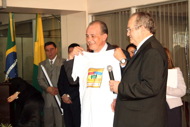 O Desembargador Pedro Ranzi, em nome do Tribunal de Justiça, entregou ao Conselheiro uma camiseta com a logomarca da Campanha pela Meta 2 e da Semana da Conciliação no Estado, especialmente desenvolvida pela Assessoria de Comunicação Social do TJAC, em reconhecimento ao apoio institucional recebido do CNJ para desenvolvimento das atividades jurisdicionais no Acre.