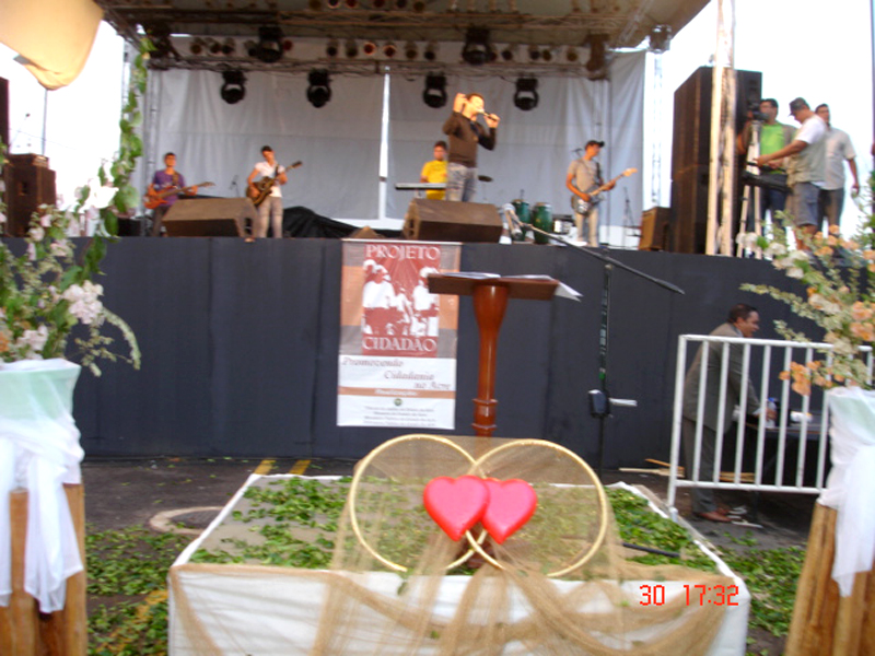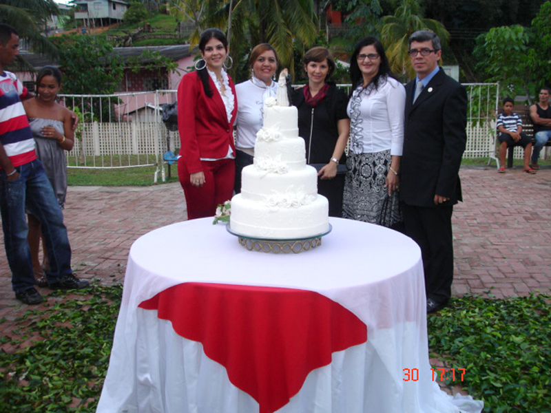 O casamento coletivo, realizado em Cruzeiro do Sul, contou decoração especial, cenário para fotos, bolo, banda de música, além do convite de casamento e chocolates, entregues como lembrança da festa aos noivos juntamente com suas certidões.