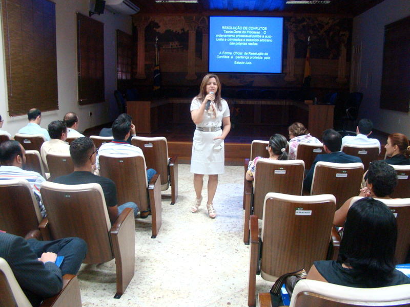 Nessa perspectiva, o curso ministrado pelas juízas Olívia Ribeiro, na parte da manhã, e Mirla Cutrim, na parte da tarde, buscou o desenvolvimento de habilidades autocompositivas, técnicas de mediação e de conciliação para uso em audiências. Os participantes discutiram conhecimentos relativos à teoria do conflito, teoria da negociação, mediação, comunicação conciliatória e habilidades interpessoais, com base em metodologia vivencial, pragmática e em estudos de caso.