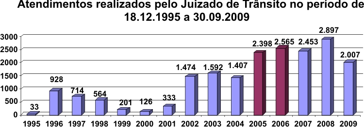 O Juizado de Trânsito da Comarca de Rio Branco divulga o boletim estatístico dos  meses de agosto e  setembro. Em agosto foram realizados 264 atendimentos, com 169 processos registrados e autuados, enquanto que em setembro foram feitos 240 atendimentos, com 160 processos registrados e autuados. De janeiro a setembro deste ano, o JTRAN já registra 2.207 atendimentos. Em 2008, por todo o ano, foram 2.897.