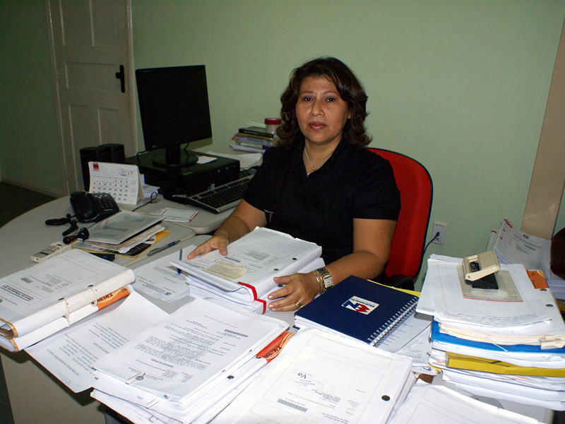 Durante 17 minutos de entrevista, o telefone tocou 14 vezes, afora os atendimentos a cidadãos, advogados, juízes e promotores de Justiça. Quem observa a agilidade da escrivã Helenir de Araújo Vieira Muniz, não imagina há quanto tempo ela trabalha. Com a mesma empolgação dos primeiros dias, ela se dedica há três décadas ao Poder Judiciário do Estado do Acre.