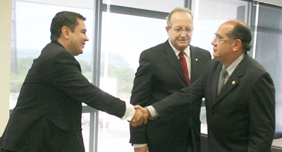Para divulgar e compartilhar a experiência de sucesso do Programa de Prevenção às Drogas, desenvolvido no Estado do Acre desde março deste ano, o Presidente do Tribunal de Justiça do Acre, Desembargador Pedro Ranzi, e o Juiz Elcio Sabo Mendes Júnior, idealizador e coordenador do Programa, foram recebidos em Brasília (DF) pelo Presidente do Supremo Tribunal Federal, Ministro Gilmar Mendes.