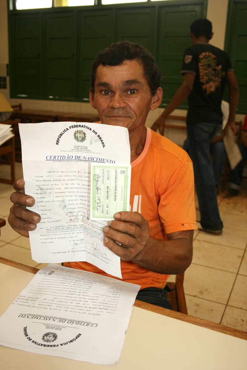 Projeto Cidadão: Em Vila Campinas, agricultor de 68 anos consegue sua Certidão de Nascimento, 20.10.2009.