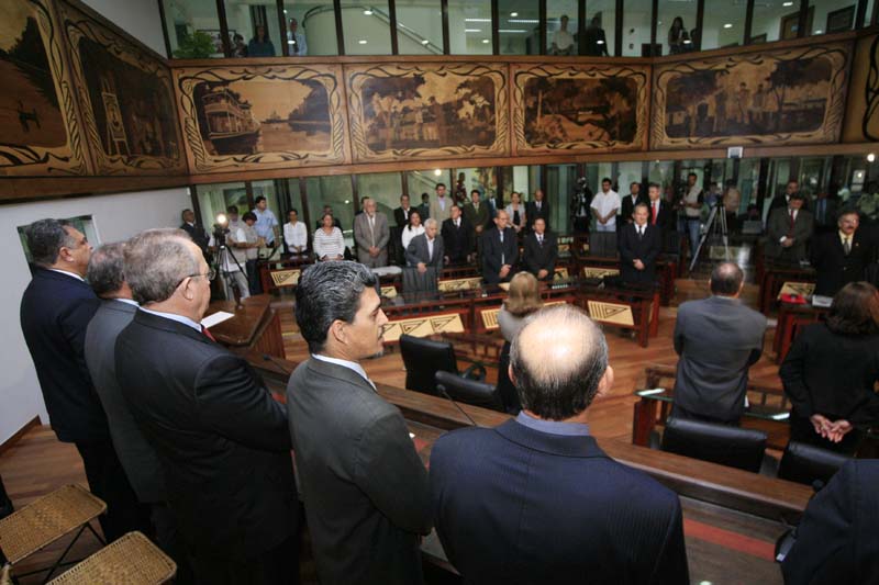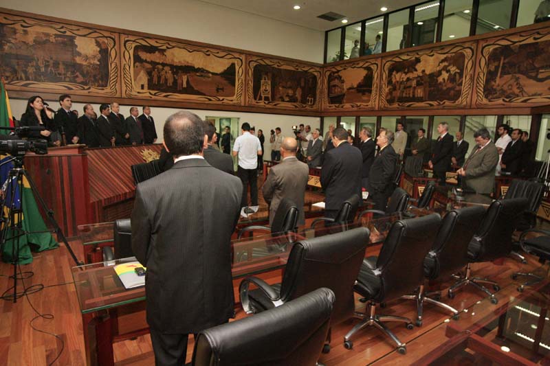 A Assembléia Legislativa do Acre realizou na manhã desta terça-feira (02) a tradicional Sessão de Abertura do Ano Parlamentar, com a participação do Vice-Governador César Messias, representando o Governador Arnóbio Marques, do Presidente do Tribunal de Justiça, Desembargador Pedro Ranzi, do Presidente do Tribunal Regional Eleitoral do Acre, Desembargador Arquilau Melo, do Procurador Geral de Justiça, Procurador Sammy Barbosa, do Presidente do Tribunal de Contas do Estado, Conselheiro José Augusto de Faria, dentre outras autoridades.