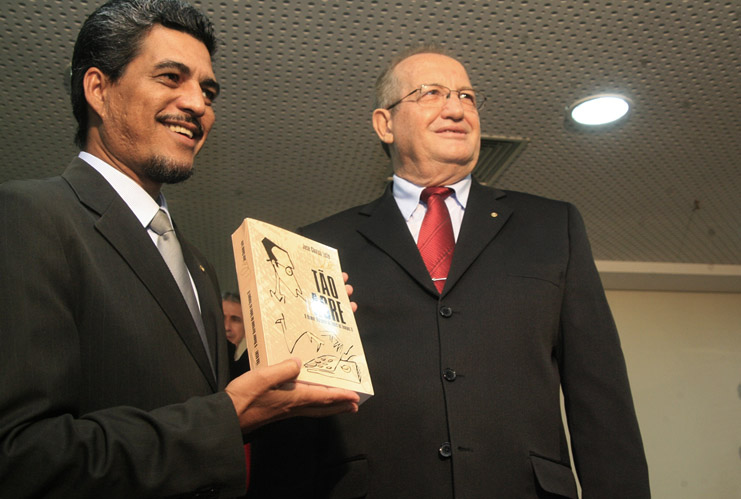 O Desembargador Pedro Ranzi aproveitou a oportunidade da visita à Aleac para presentear o Presidente da Casa, Deputado Edvaldo Magalhães, com um exemplar do livro “Tão Acre – O humor acreano de todos os tempos II”, recém-editado por meio de uma parceria do Tribunal de Justiça com o Sindicato dos Jornalistas Profissionais do Acre.