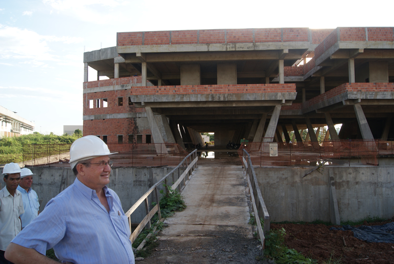 O Presidente do Tribunal de Justiça do Estado do Acre, Desembargador Pedro Ranzi, visitou na tarde dessa terça-feira (27) as obras da nova sede do Tribunal de Justiça. Acompanhado do Diretor Geral do TJAC, Carlos Afonso, de equipe de assessores e do engenheiro civil Orlando Miranda, ele verificou in loco cada um dos pavimentos da construção, cuja primeira fase (estrutura) está sendo concluída.