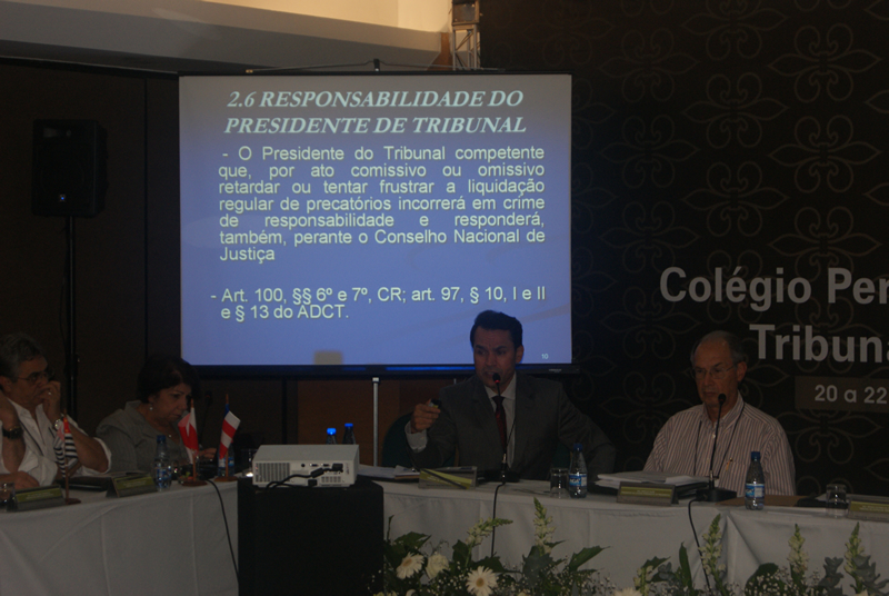 Ao final dos trabalhos, Marcus Faver discutiu a criação de uma comissão responsável pela elaboração de estudos e propostas para solução da questão dos precatórios – prontamente aceita pelos membros do Colégio. Nesse sentido, ele sugeriu o nome do Presidente do Tribunal de Justiça do Acre, Desembargador Pedro Ranzi, que se dispôs a integrar o grupo, composto ainda pelo Presidente do Tribunal de Justiça de São Paulo (representado pelo Desembargador Luís Antonio Ganzerla) e pela Desembargadora Willamara Leila de Almeia, Presidenta do Tribunal de Justiça do Tocantins.