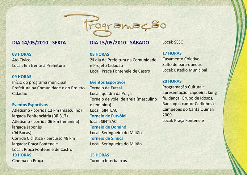 O Tribunal de Justiça do Acre e a Prefeitura do Município de Senador Guiomard, por meio de uma parceria, realizarão uma edição especial do Projeto Cidadão durante a programação festiva em alusão ao aniversário da cidade.