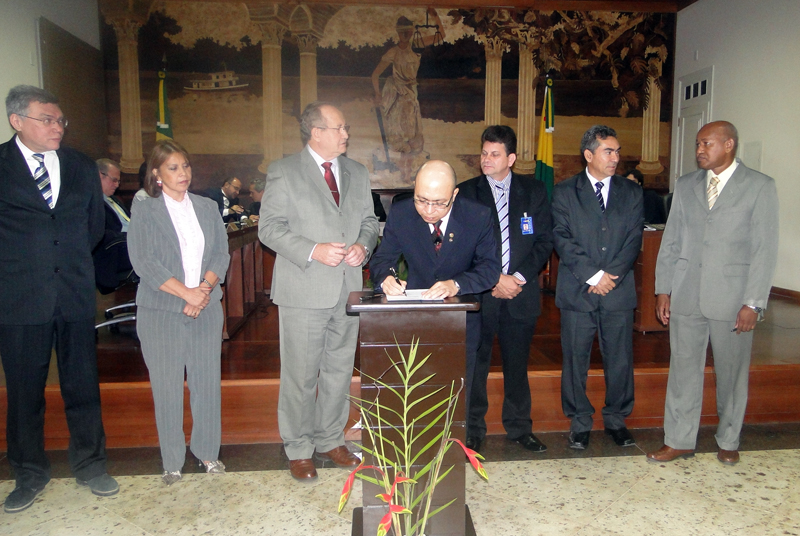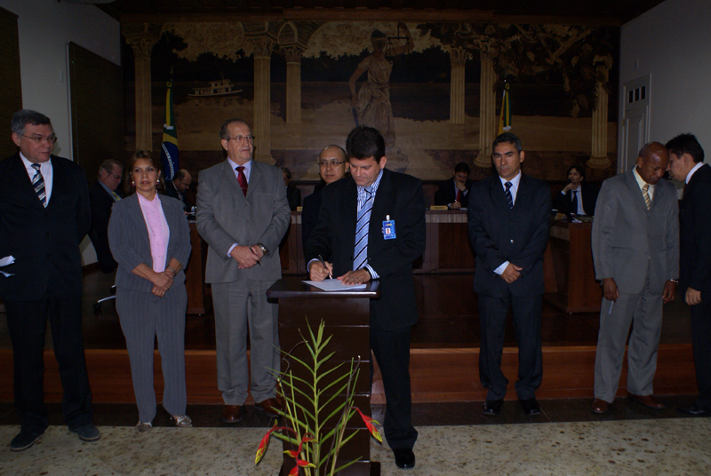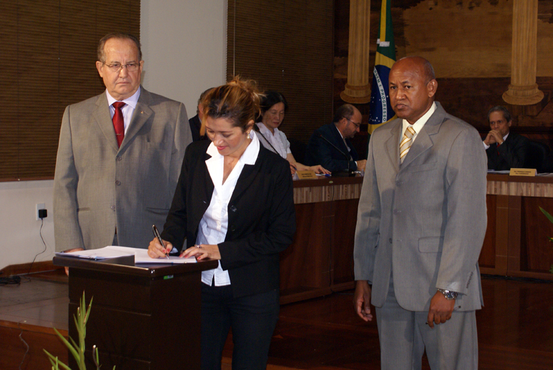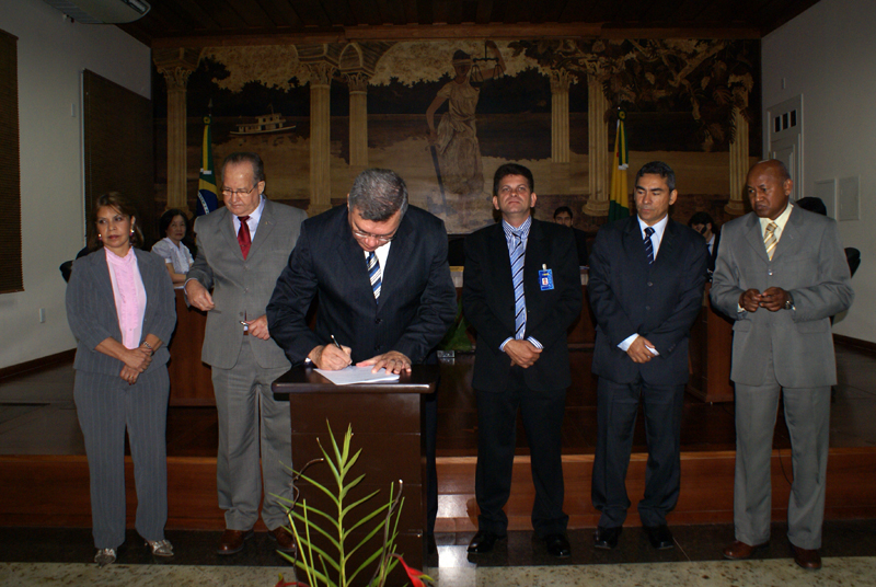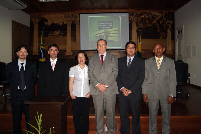 Conduzida pelo Presidente do TJAC, Desembargador Pedro Ranzi, a solenidade realizada no Palácio da Justiça teve as presenças dos Desembargadores Adair Longuini e Samoel Evangelista, Vice-Presidente e Corregedor Geral da Justiça; do Secretário de Justiça e Direitos Humanos, Henrique Corinto, representando o Governador do Estado, Arnóbio Marques; da Secretária de Desenvolvimento para a Seguridade Social, Laura Okamura; do Procurador Geral de Justiça Sammy Barbosa; do Defensor Público Geral, Dion Nóbrega Leal; do Prefeito de Rio Branco, Raimundo Angelim; do Juiz do Tribunal de Justiça do Rio Grande do Sul, e Auxiliar da Presidência do CNJ, Márcio André Keppler Fraga e do Promotor de Justiça do Estado de Goiás, Haroldo Caetano.