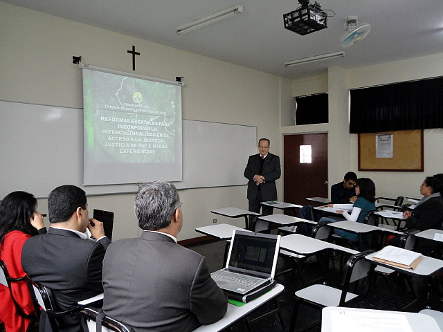 A exposição de Pedro Ranzi integrou a mesa de debates intitulada “Reformas estatais para incorporar a interculturalidade e o acesso à Justiça, Justiça de Paz e outras experiências”. Os debates da mesa foram coordenados por Javier La Rosa Calle, professor do Curso de Direito da Universidade Católica; Katya Salazar, Diretora de Programas da Fundação para o Devido Processo Legal; e Darwin Somocurcio, Presidente da Corte Superior de Justiça de Cusco. Diversos magistrados, acadêmicos e pesquisadores do tema também participaram das discussões.