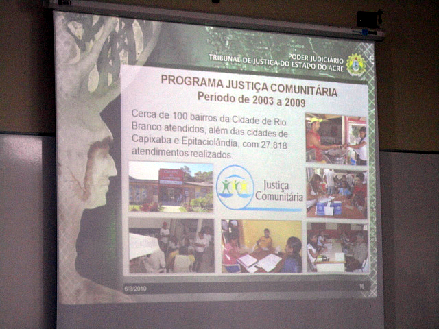 O Presidente do Tribunal de Justiça aproveitou a oportunidade para compartilhar com os participantes do Congresso os recentes avanços no Judiciário Brasileiro e Acreano, notadamente no que se refere à utilização da tecnologia como mecanismo para assegurar mais celeridade e eficácia na aplicação da Justiça. Ele também mencionou a importante atuação do Conselho Nacional de Justiça, no sentido de integração e compartilhamento das diversas experiências brasileiras e unificação do Judiciário Brasileiro.