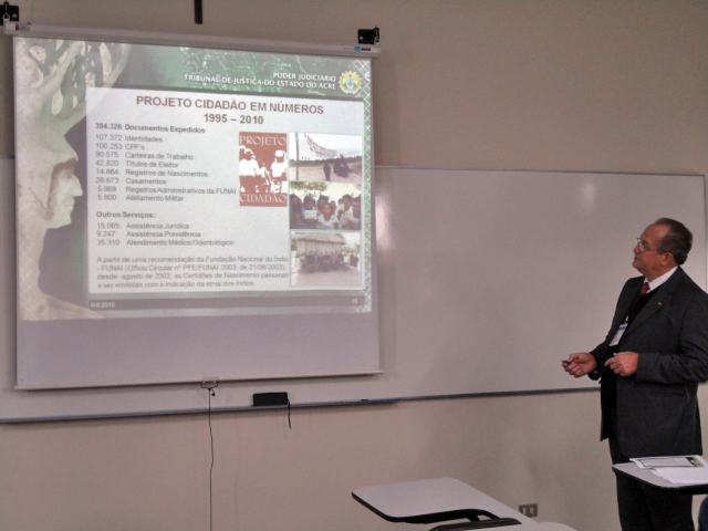 No Congresso, o Desembargador-Presidente apresentou o trabalho “Direito à interculturalidade e a facilitação do acesso ao Judiciário: experiências na Amazônia Acreana”, com o objetivo de discutir a eficiência da legislação brasileira num espaço de diversidade étnica e cultural, que é a Amazônia Acreana.