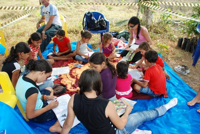 Pensando no equilíbrio do Planeta Terra, o dia foi encerrado com a distribuição e plantio de mudas, e com o recital de poesias produzidas no Cantinho Rios do Saber, de incentivo à leitura e à preservação da natureza.
