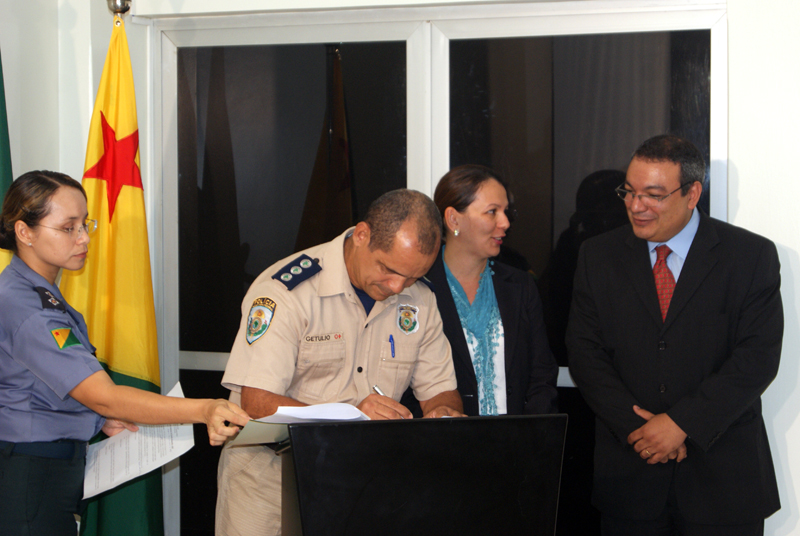 O Termo foi assinado pela Secretária de Segurança Pública do Estado, Márcia Regina, e pelo Presidente do Tribunal de Justiça do Acre, Desembargador Pedro Ranzi. Estiverem presentes no ato o Promotor de Justiça Álvaro Pereira, representando o Ministério Público Estadual; o Superintendente da Polícia Federal, José Calazane; o Comandante Geral da Polícia Militar do Acre, Cel. Romário Célio e o Corregedor da Polícia Civil, André Monteiro.