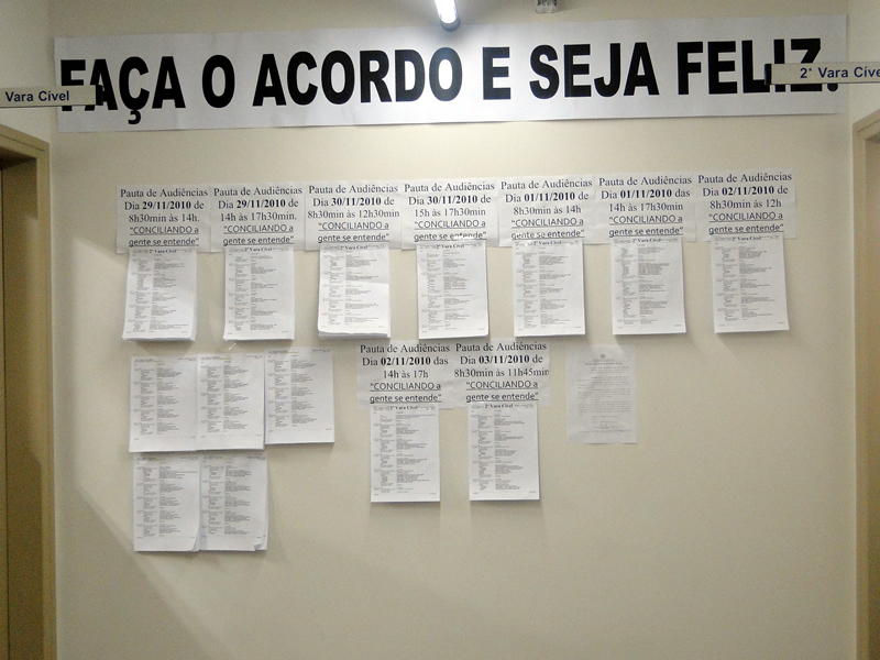 Em 2008, foram realizadas 305.591 audiências e, em 2009, foram 260.416, sendo que dessas 122.943 chegaram a um acordo.