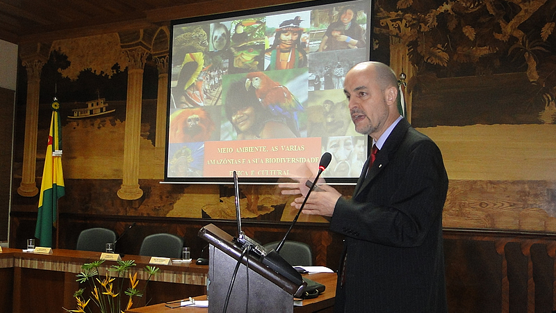 Procurador da República Marcus Vinícius, autor da obra apresentada e lançada na noite de quinta, palestrou sobre o tema "O meio ambiente, as várias Amazônias e a sua biodiversidade física e cultural". Fez uma breve retrospectiva sobre a vida indígena ao longo da história no Brasil e no mundo, e sobre as leis existentes em prol dos índios, tanto em âmbito nacional quanto estadual.