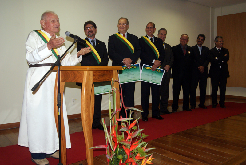 O frei Paulino Baldassari também foi um dos homenageados da noite. Ele dedicou a sua vida ao povo do Acre e até hoje, aos 85 anos, ainda sobe e desce rios em Sena Madureira cuidando de seringueiros e ribeirinhos. "Sou italiano, mas meu coração é profundamente acreano. Eu me sinto feliz em estar aqui representando o povo do Acre. Eu fui o primeiro aqui a falar em ecologia, quando ninguém falava disso. Por isso é que peço a todos que criem uma consciência, e que isso saia das reuniões e venha para a prática, porque não podemos derrubar nossa floresta. É preciso desenvolver e comer carne de gado, mas hoje já temos uma ciência e uma tecnologia para isso", disse.