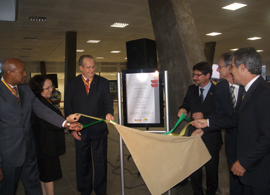 Ao dar início à solenidade, o Presidente do TJAC agradeceu ao Governador Arnóbio Marques o apoio concedido à atual Direção do Tribunal, ressaltando a importância do relacionamento respeitoso e harmonioso entre os Poderes Executivo, Legislativo e Judiciário nos últimos anos, o que, segundo ele, tem contribuído para a efetivação de importantes ações para o engrandecimento do serviço público no Acre e melhoria da vida do povo acreano.