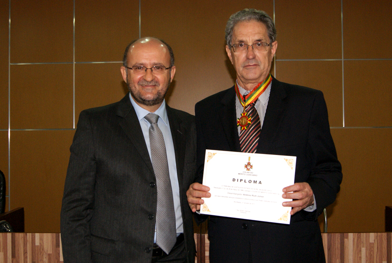 Na oportunidade ele foi condecorado, recebendo das mãos do Desembargador-Presidente Adair Longuini o Colar e o Diploma do Mérito Judiciário, insígnia conferida àqueles que tenham prestado relevante contribuição ao Judiciário Estadual. A comenda foi aprovada pelo Conselho de Honraria e Mérito e apreciada pelo Pleno do TJAC.