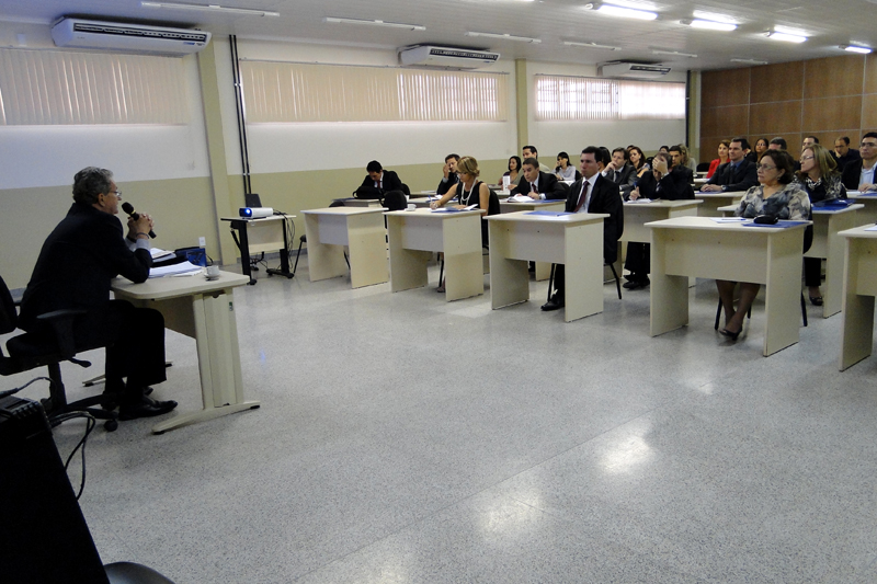 Logo depois, todos os presentes participaram da Aula Inaugural, na sede da ESMAC, Anexo I – ministrada pelo Desembargador Antônio Rulli Júnior, com o tema “Plano Nacional de Capacitação”.