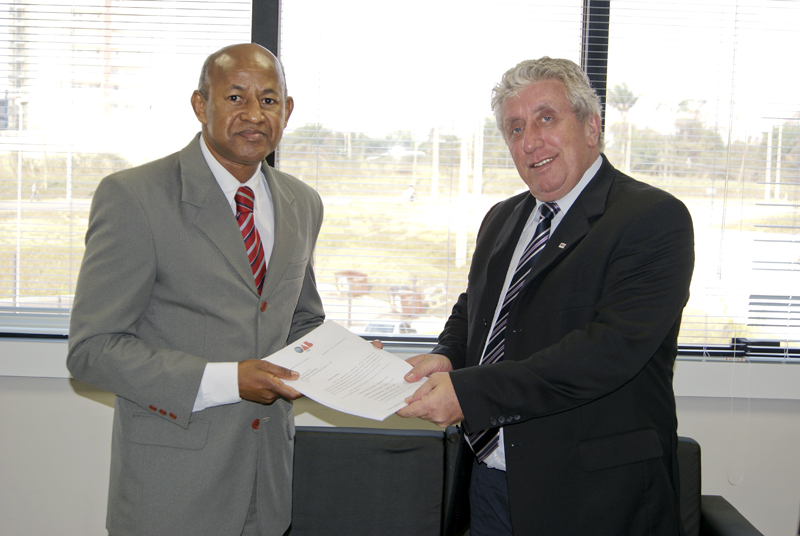 Durante encontro ocorrido no final da tarde dessa quinta-feira (1º), o Vice-Presidente do TJAC, Desembargador Samoel Evangelista, recebeu o documento das mãos de Florindo Poersch, Presidente da Ordem. O Secretário-Geral da OAB, Erick Venâncio, também esteve presente.