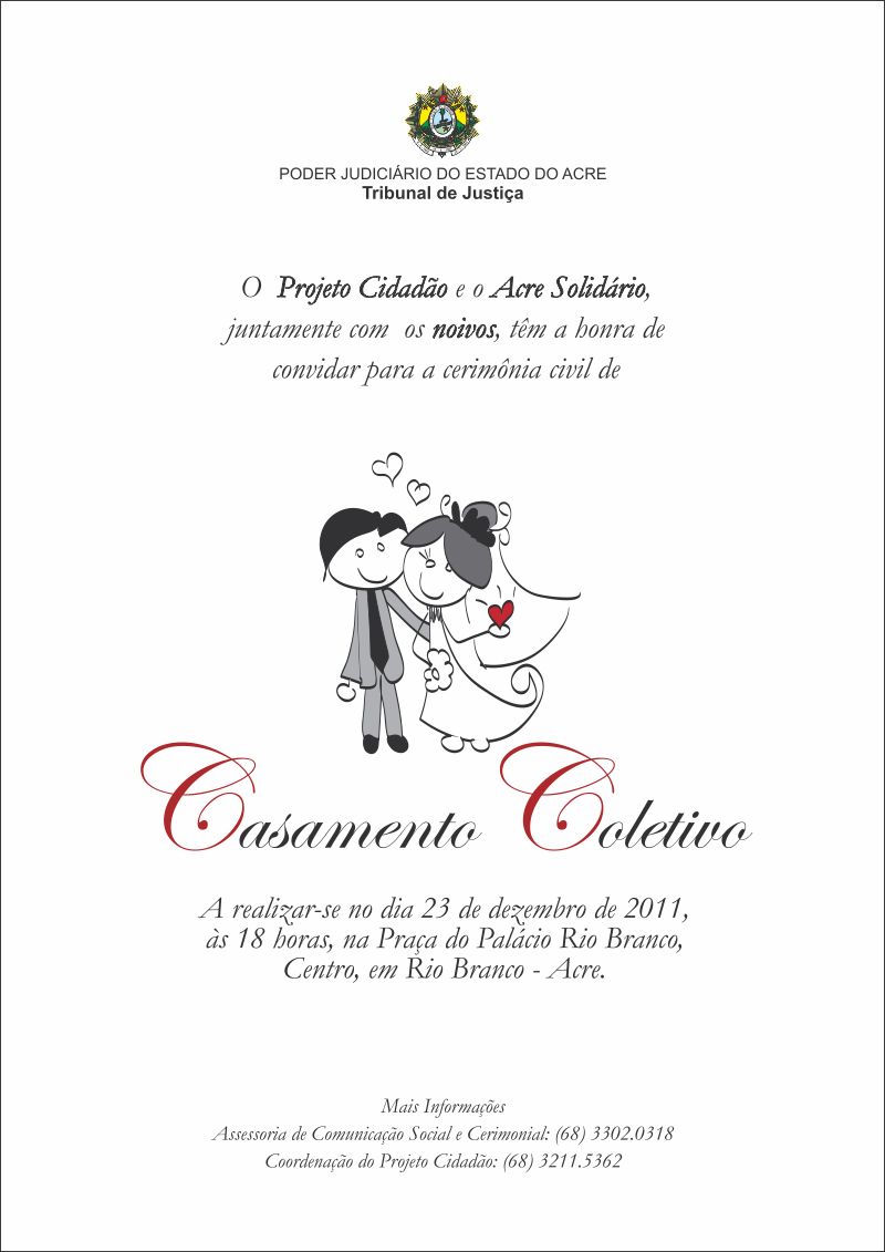 - 01.08.2011 – Casamento Coletivo 2011: Tribunal de Justiça e Projeto Cidadão realizam 900 casamentos no Ginásio do SESI Cerimônia de Casamento Coletivo aconteceu no último sábado (31), em Rio Branco.