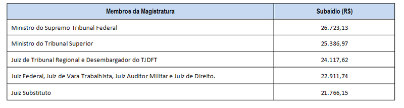 Desse modo, o teto constitucional ficou definido pela seguinte tabela: