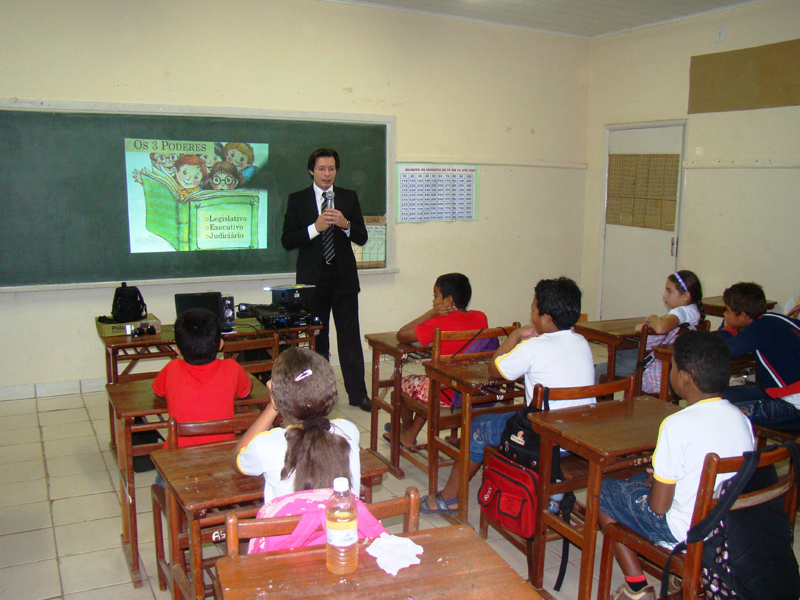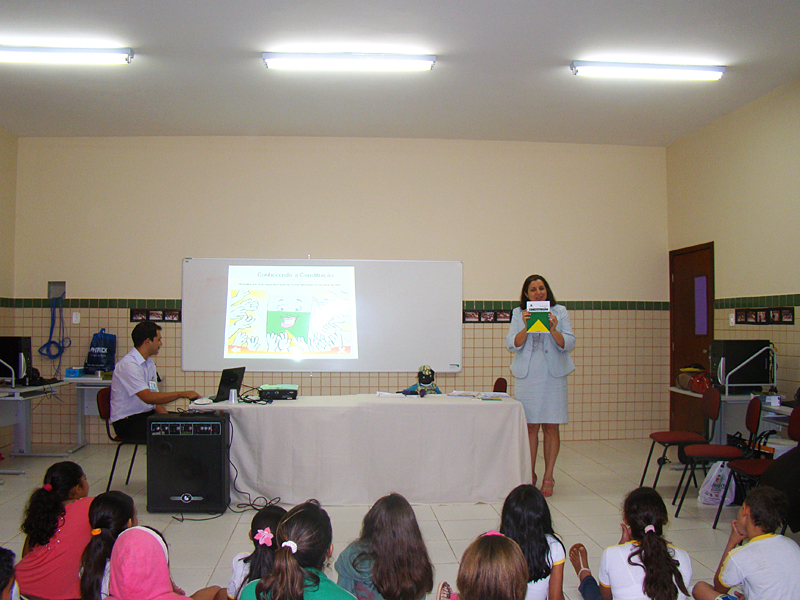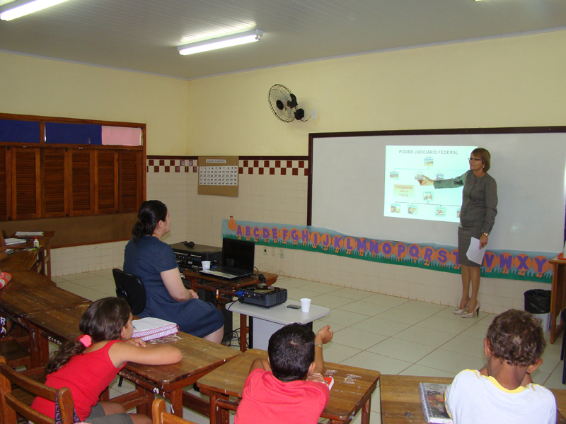 Durante a atividade foram expostas aos alunos as principais atribuições e diferenças existentes entre os poderes Legislativo, Executivo e Judiciário, e os principais direitos e deveres dos cidadãos.