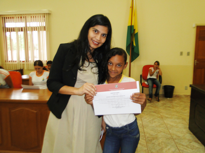 Ao final das atividades, a juíza Shirlei Menezes e sua equipe de servidores premiou simbolicamente a melhor redação e realizou ainda a entrega dos certificados de participação no projeto a todos os alunos que participaram das atividades.
