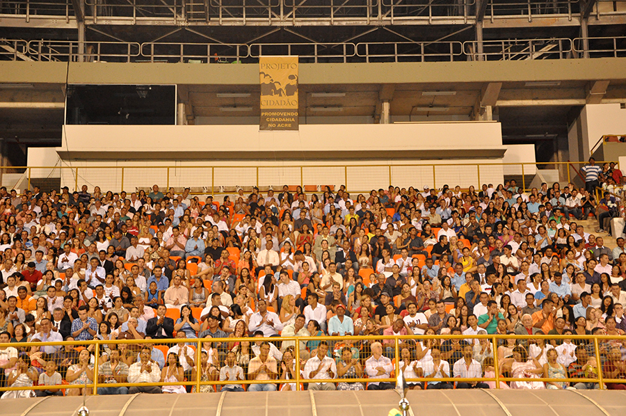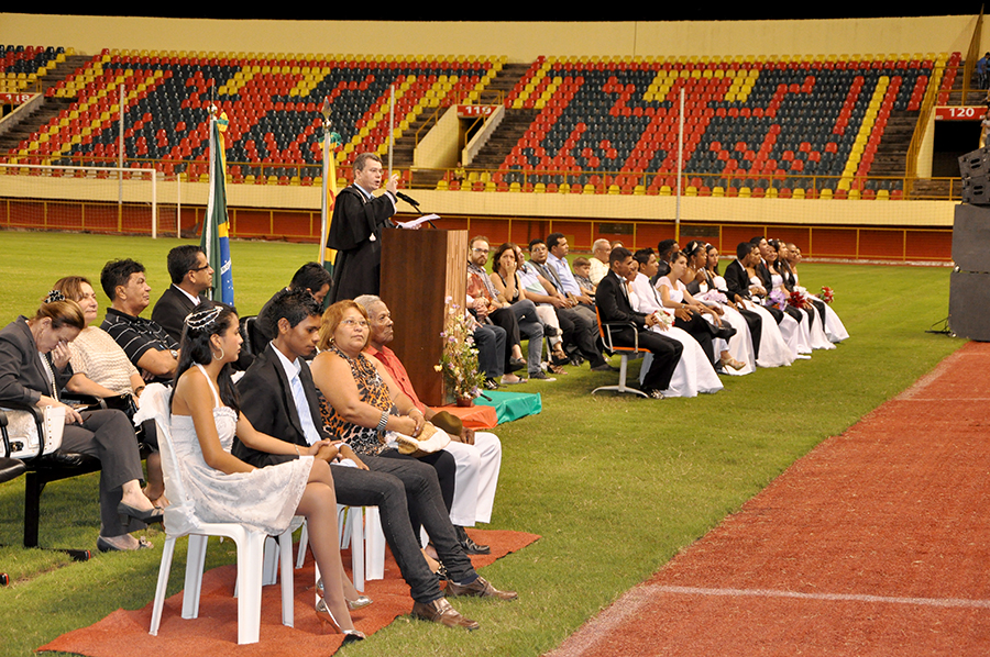 Para celebrar a união civil de 1.100 casais, o Tribunal de Justiça do Acre e o Projeto Cidadão promoveram uma grande festa na noite de sexta-feira (21) no estádio Arena da Floresta. Mais de 3,5 mil pessoas acompanharam o evento, que reuniu, além dos 2.200 noivos, seus familiares e convidados.