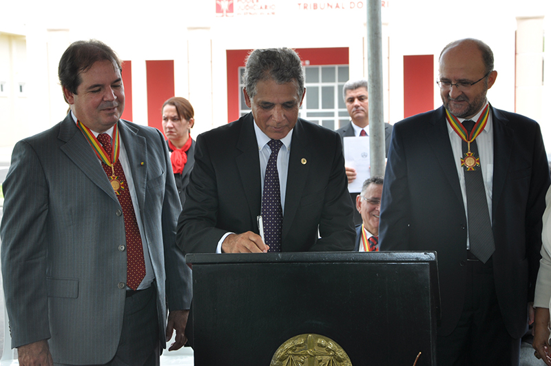 Em seguida, houve a assinatura da ata de instalação (veja aqui) pelas autoridades, que foram convidadas a descerrar a placa alusiva à entrega da Cidade da Justiça e conhecer a estrutura do novo empreendimento.