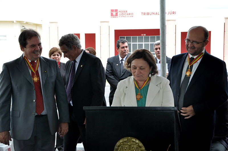 Concedida aos que contribuem para o engrandecimento da Justiça e o fortalecimento da cultura jurídica no Estado, o Colar do Mérito Judiciário foi entregue ao governador Tião Viana. A mais alta honraria do Judiciário Acreano foi concedida em virtude do apoio recebido pelo Tribunal e parcerias estabelecidas, como essa que resultou na construção da Cidade da Justiça.