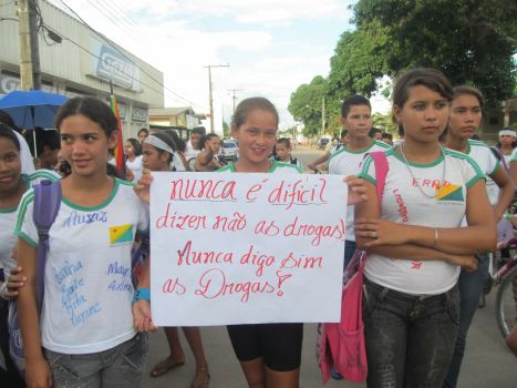 Ao lado de representantes das comunidades católica e evangélica, da Loja Maçônica, do Instituto Sócioeducativo (ISE), das Polícias Civil e Militar, do Conselho Tutelar, do Ministério Público Estadual (MPE) e da Defensoria Pública do Estado (DPE), alunos dos colégios que participaram do projeto percorreram as principais ruas de Feijó, empunhando faixas e cartazes com as frases “vida sim, drogas não” e “siga seu caminho, não as drogas”.