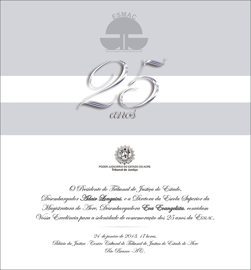 A comunidade jurídica do Estado e diversas instituições da administração direta e indireta do Acre estarão representadas no evento, no qual, por ocasião do jubileu de prata do órgão de ensino do Poder Judiciário, serão conferidas homenagens àqueles que contribuíram para a consolidação e engrandecimento da Escola.