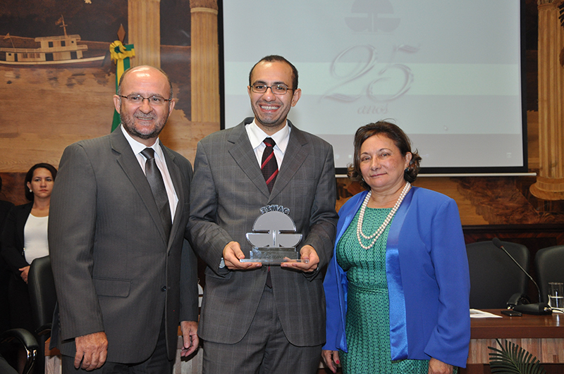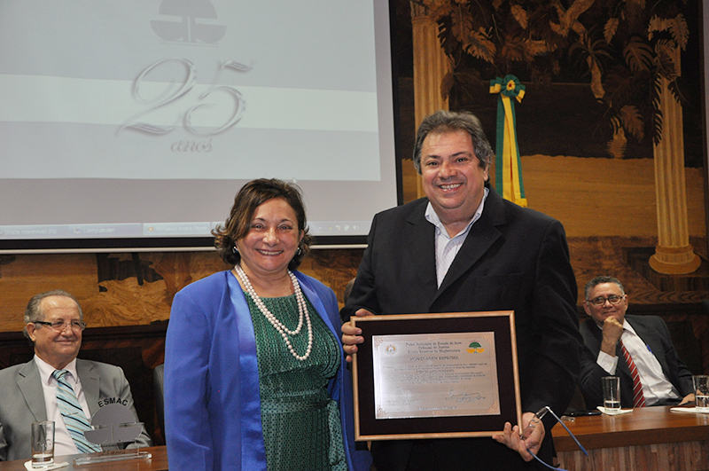 O secretário da fazenda e gestão pública do Acre, Mâncio Cordeiro recebeu uma homenagem especial, em razão do apoio institucional que conferiu à Esmac, sobretudo para implementação do curso de MBA. Ele recebeu das mãos da desembargadora Eva Evangelista o troféu do jubileu de prata e uma placa.