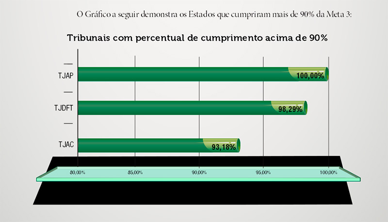 O Tribunal de Justiça do Acre alcançou o índice de 93,18% de cumprimento da Meta 3 da Estratégia Nacional de Justiça e Segurança Pública (Enasp), ocupando o terceiro lugar dentre todos os tribunais estaduais do Brasil.