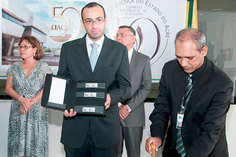 Coube ao representante dos Correios, Antonio Carlos, conduzir o ato obliteração (colocar o carimbo em bilhetes e selos), dos quais participaram os desembargadores Cezarinete Angelim (vice-presidente) e Pedro Ranzi (corregedor geral da Justiça); o procurador Sammy Barbosa (membro do MPE/AC) e o advogado Luiz Saraiva (membro da OAB/AC).
