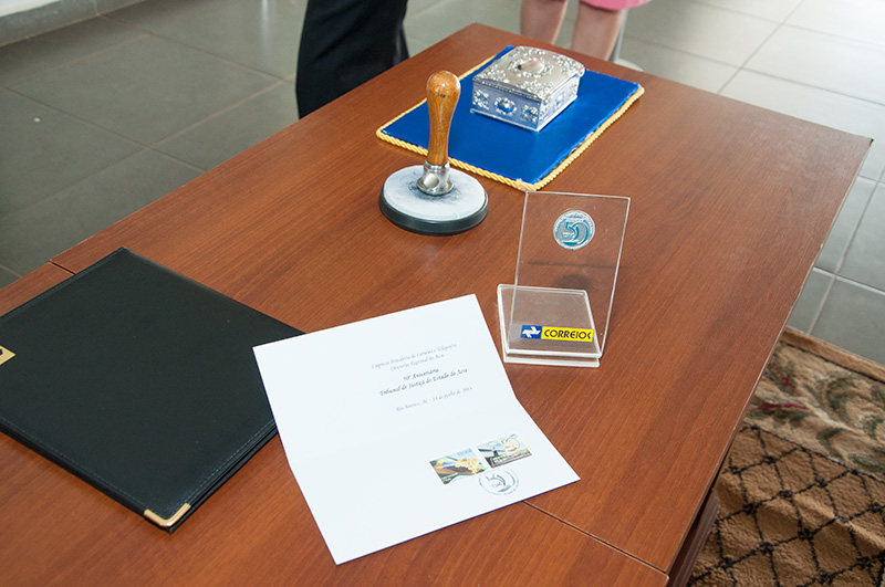 Após a sessão, todos foram convidados a fazer parte de um segundo momento também relacionado às comemorações: o lançamento de selo e carimbo postais alusivos ao cinquentenário do TJAC.