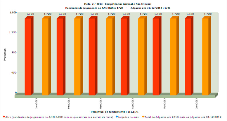 Mesmo que algum processo que esteja suspenso volte para a meta 2, o cumprimento deverá ser alcançado, já que atualmente há nenhum processo dessa meta para julgar.